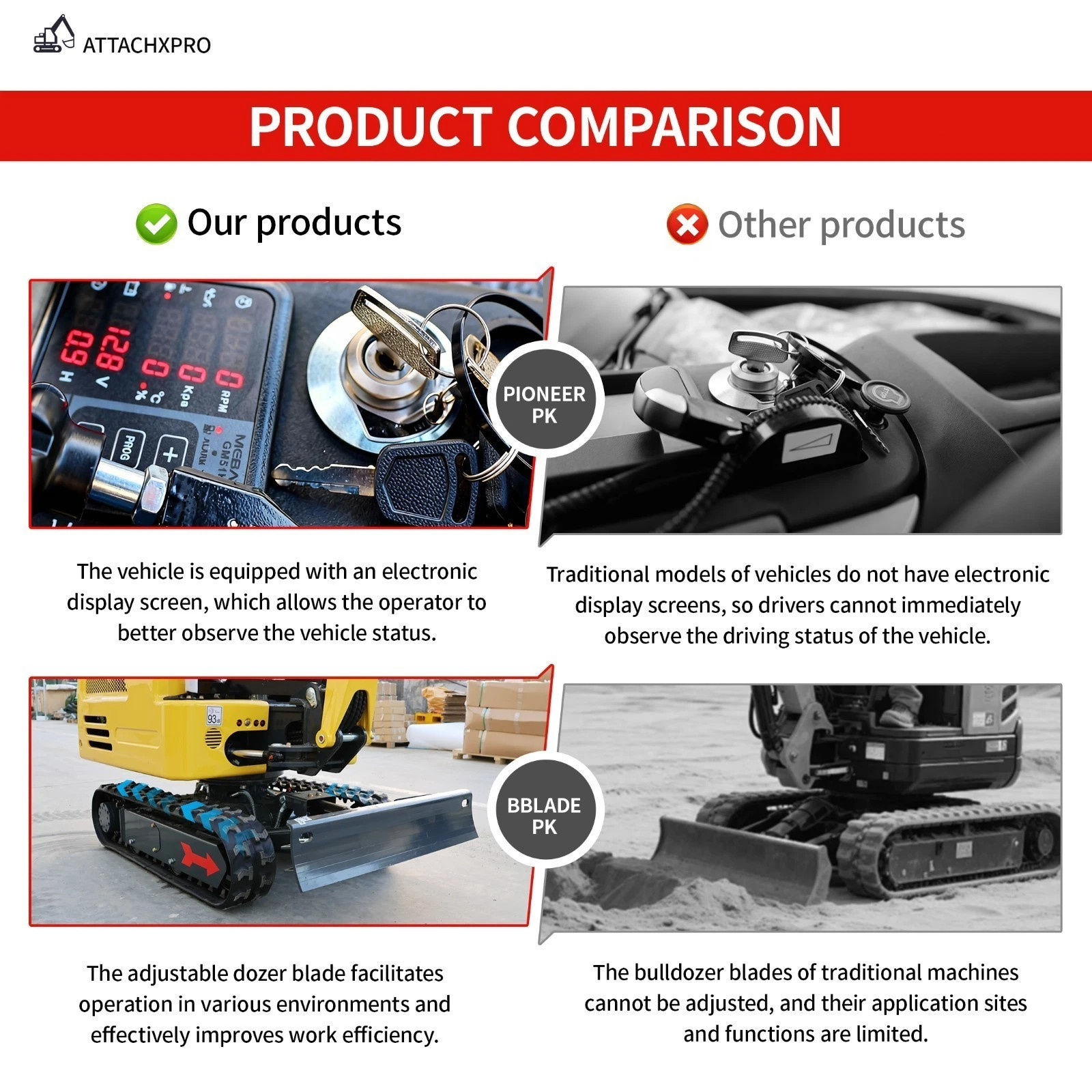✅Side Swing Boom : 124° maximum deflection angle for flexible operation in confined spaces (e.g., backyard, trenches). ✅Pre-Installed Thumb Clamp : Effortlessly grab, lift, and move debris, logs, rocks, and construction materials with precision.