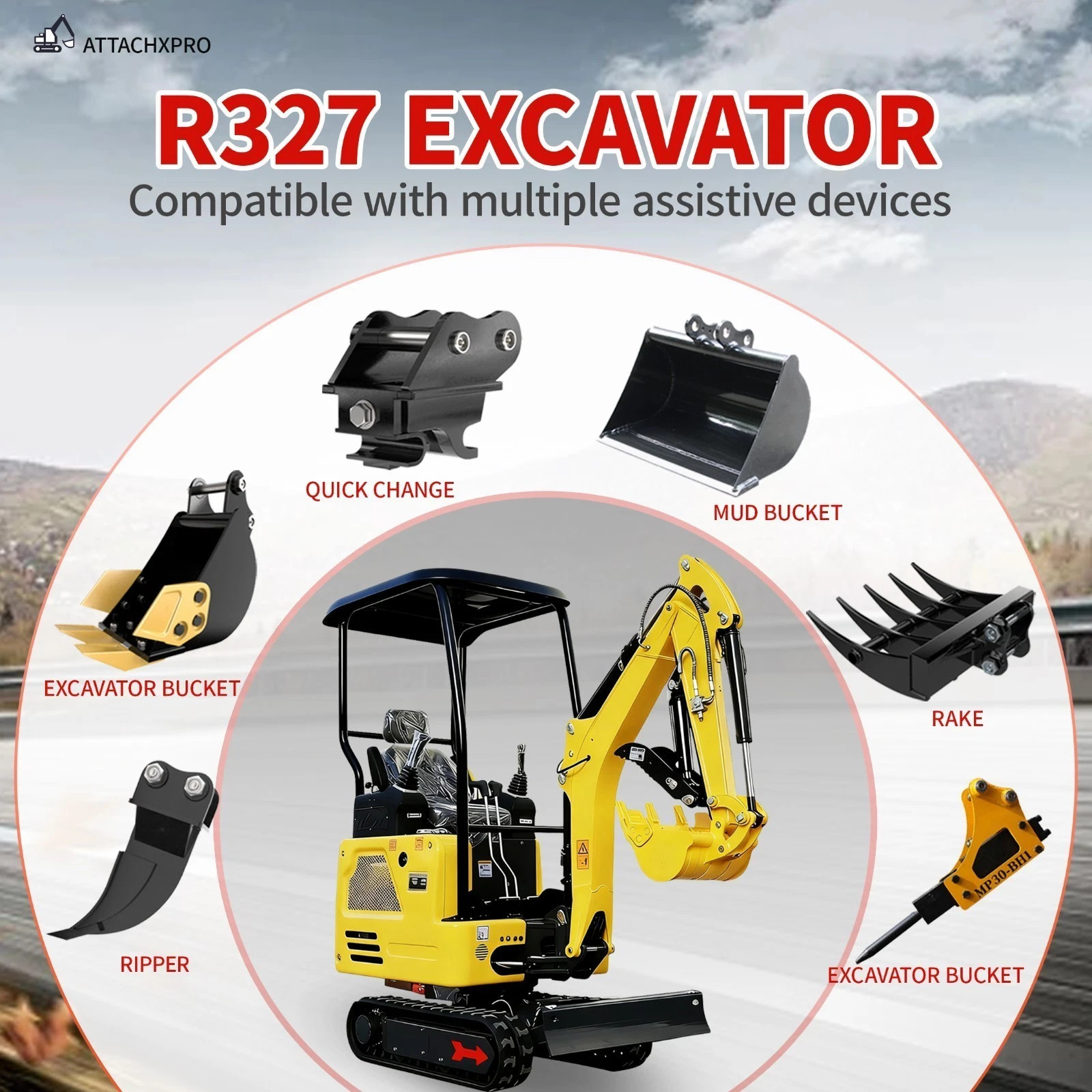 With its compact and user-friendly design, this attachment works with quick change tools to replace various auxiliary equipment including scarifiers, rakes, rotary drills, wood grabbers, and tilt buckets. It excels at drilling, excavation, grabbing, pushing soil, cleaning ditches, and landscape beautification work.
