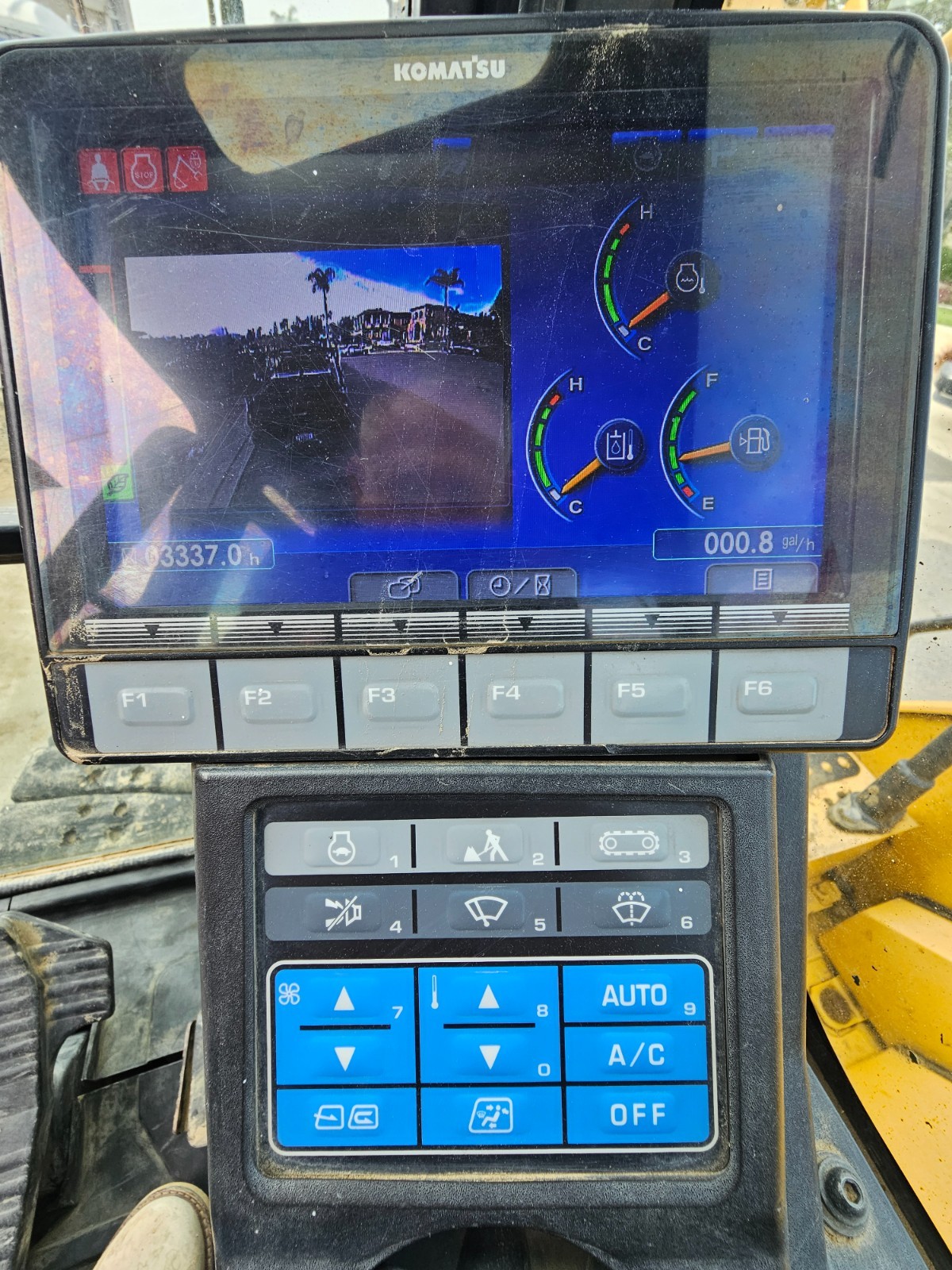 The excavator has logged 3,337 operating hours and remains in excellent working condition. The climate control system is particularly impressive, featuring a fully functional heater and air conditioning that keep the operator comfortable during long workdays.