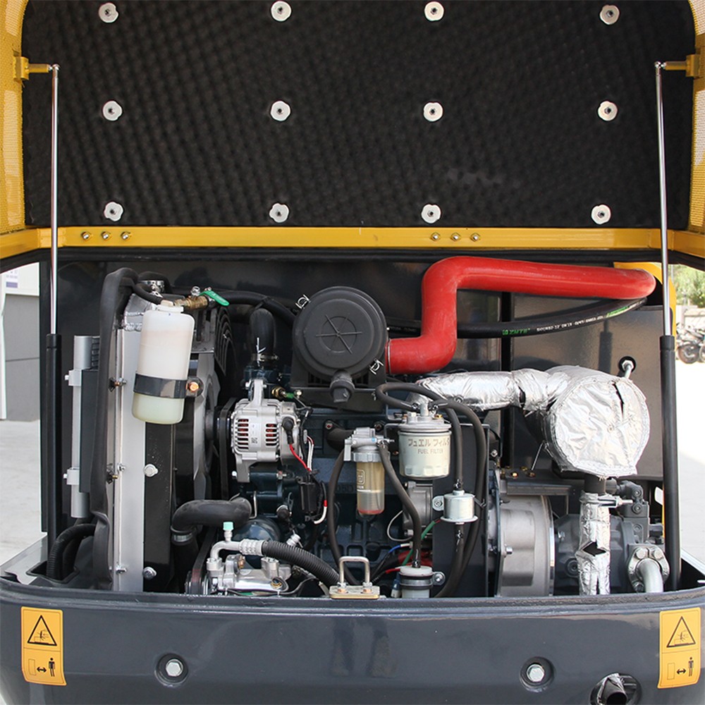 The excavator excels in greenhouse, indoor landscaping, orchard work, trenching, tree planting, and utility installations. Operators can master controls within minutes. All attachment points feature galvanized pins for rust resistance and wear-resistant bushings for durability.