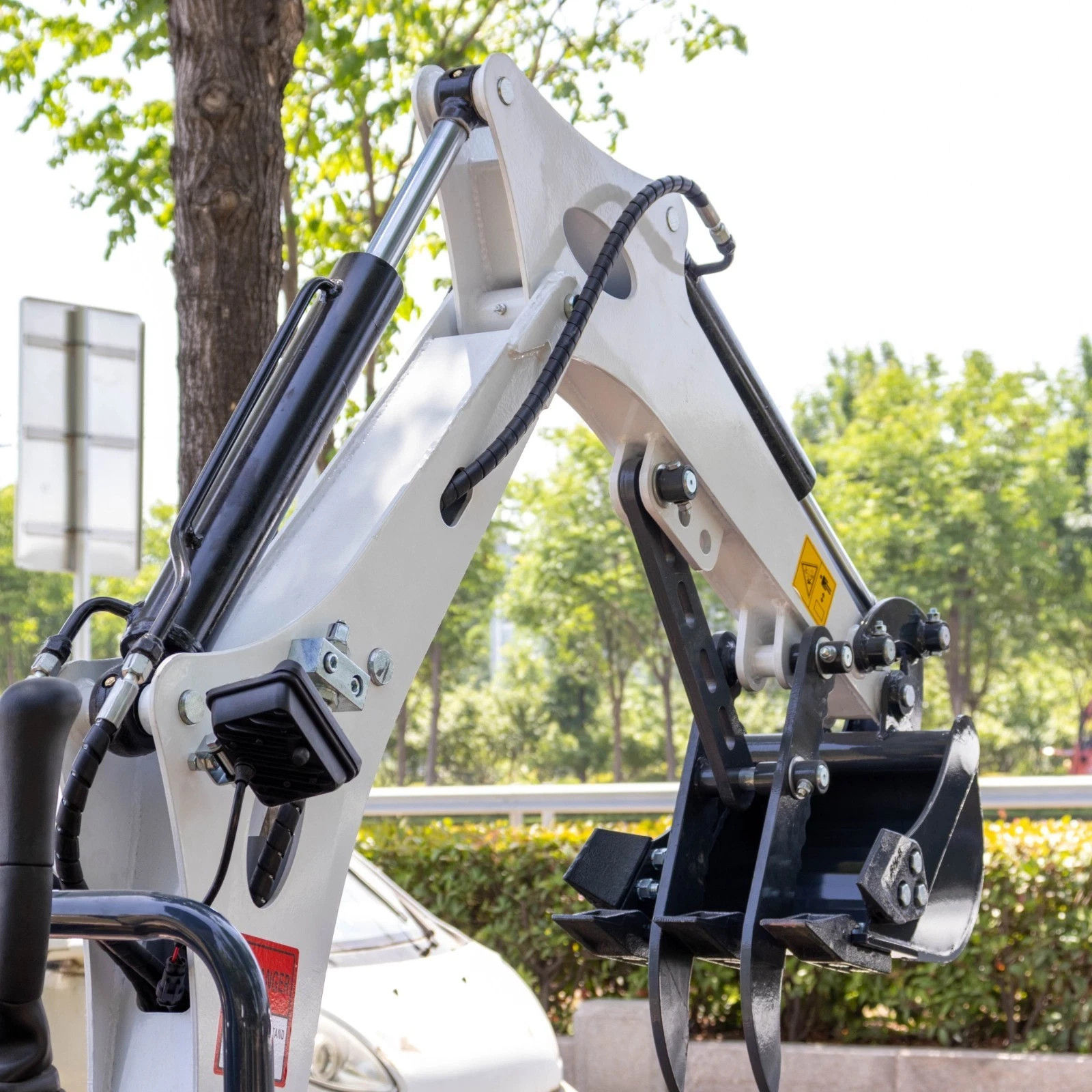This mini excavator comes with a comprehensive package of free attachments including a 380mm toothed bucket, 500mm flat bucket, mechanical thumb, ripper, toolbox, and digital manual with comprehensive instructions.
