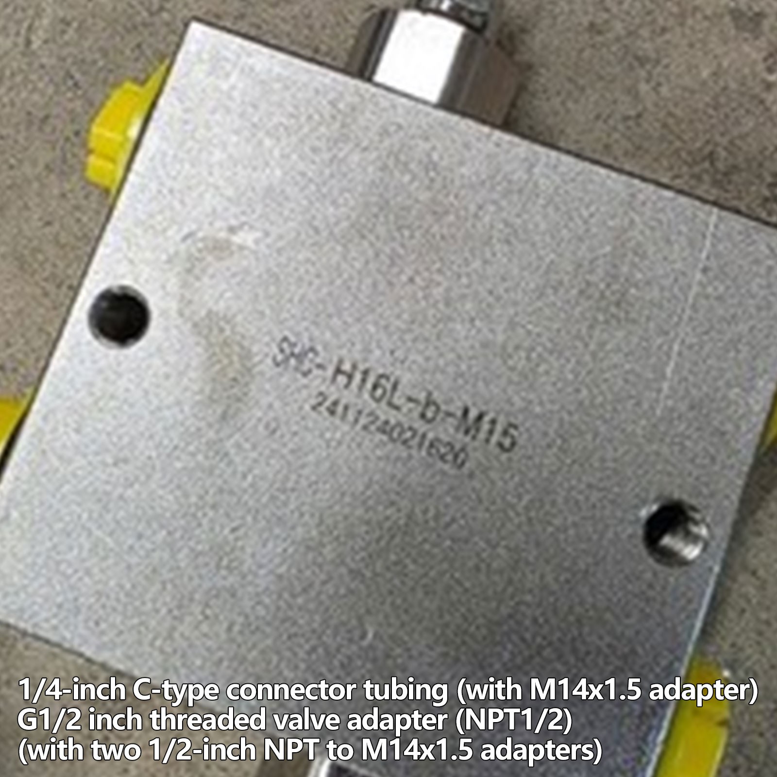 ✅ Includes dual cross relief valve, all necessary fittings, and hoses – just connect inline with your existing swivel motor hydraulic lines. ✅ Compatible with any machine using 1/4” hydraulic hoses and M14x1.5 threaded hose ends.