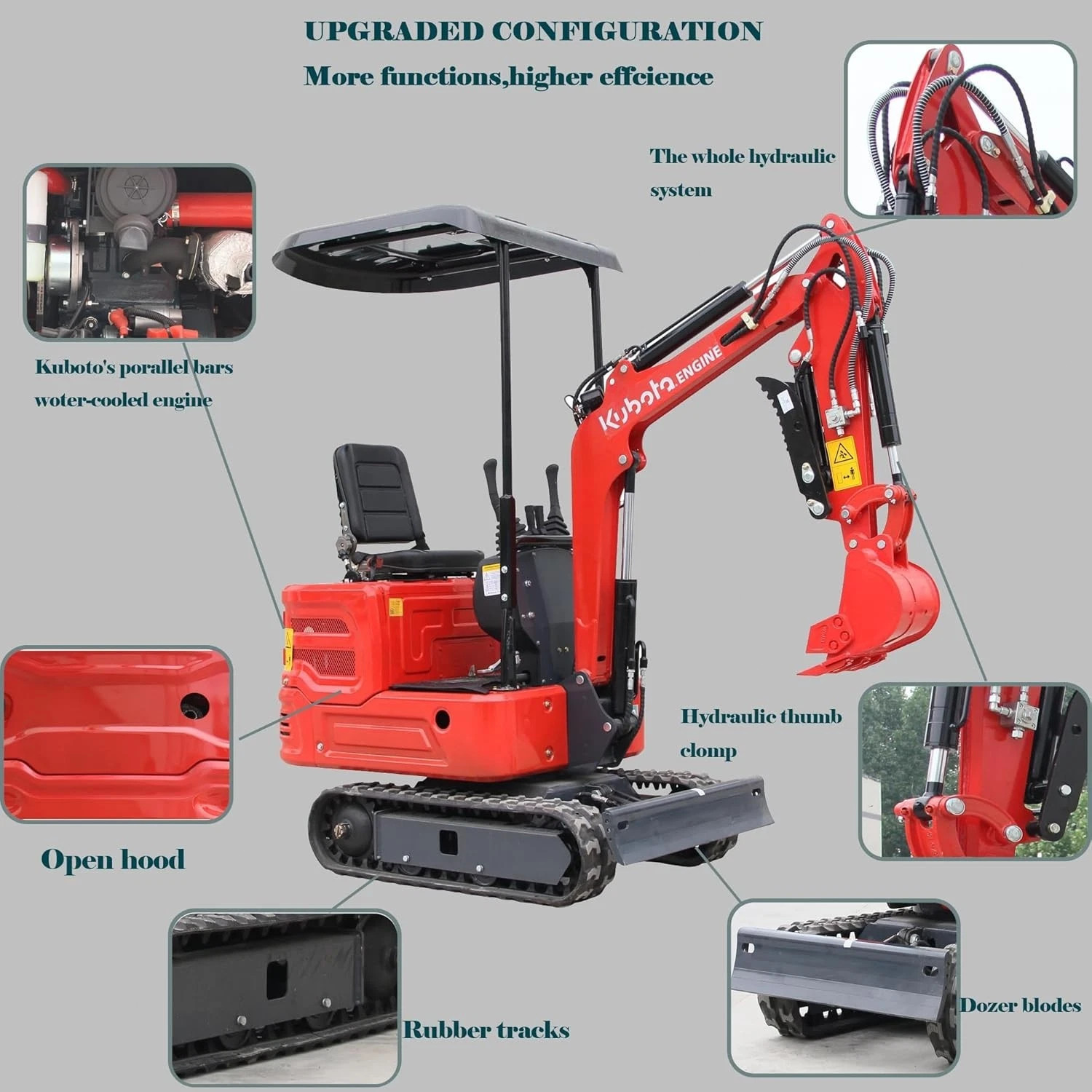 System EPA Engine USA. Reduces operator fatigue and enables accurate digging, leveling, and finishing work. Bulldozer blade with folded-edge design + reinforced rib plates for extra strength. Outperforms manual labor and large machinery.