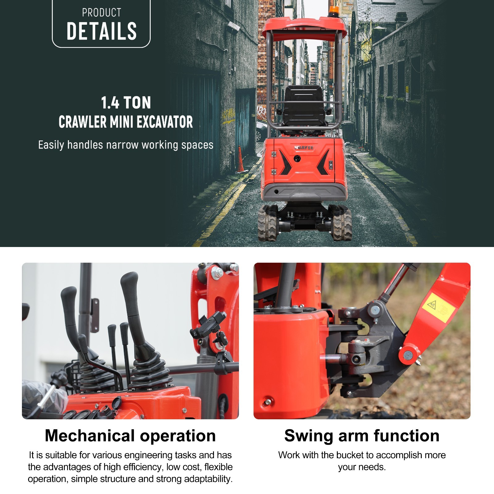 HY14C FREE SHIP Mini Excavator 13.5hp 1.4Ton Gas B&S EPA Engine+4 Accessories