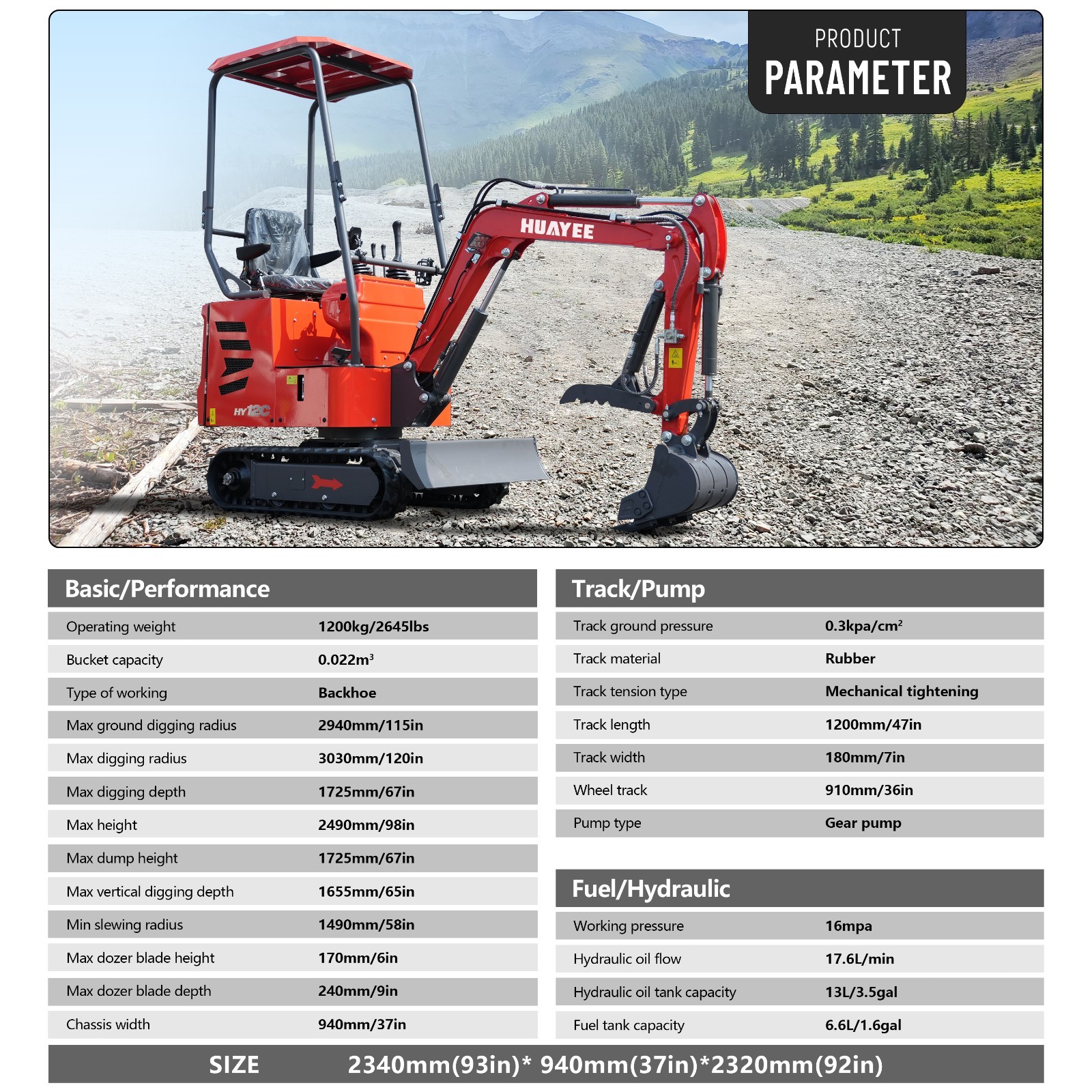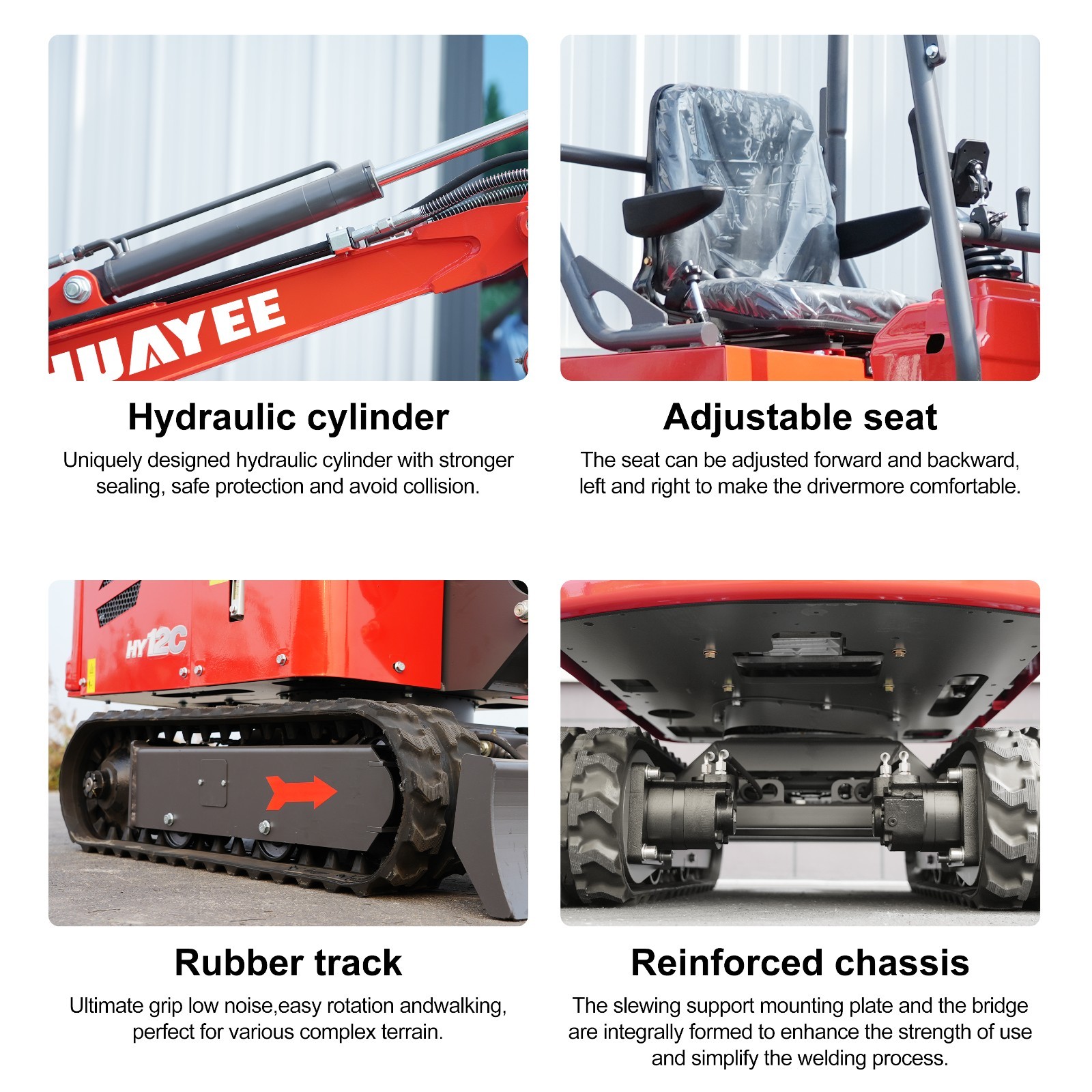 HY12C FREE SHIP Mini Excavator 1.2Ton 13.5hp Gas EPA Engine+Auger+Ripper+Bucket