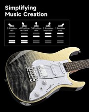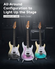Donner DST-550 Electric Guitar 4/4 Full Size Black Mirage With Tremolo Bar, Bag