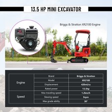 13.5hp mini excavator, pilot control system, B&S EPA engine, free delivery.