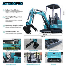 1.8T Mini Excavator with Hydraulic Thumb,Kubota Diesel Engine with 4Attachments