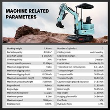 1.4 Ton Mini Excavator Kubota Diesel Engine Hydraulic Pilot +9 Attachments
