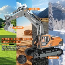 RC Excavator Toy for Boys 3-12, 3-IN-1 Bucket/Claw/Drill, 2.4GHz 14 Channel Cons
